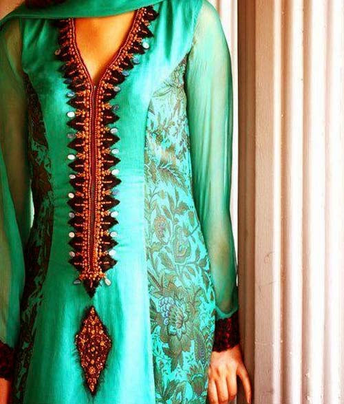 Nowadays we are discussing about Pakistani Most recent Neck Designs for Salwar Kameez 2013-14 for ladies and girls. Ladies kurta is the standard dress of Indian lifestyle. Some period called as churidar. A Churidar Salwar is a baggy trousers bunch up correct cord coupled the shaft.Chudidars generally fine muslin or cotton, in white. But nowadays comes in numerous colours and patterns. It appears great on proper and casual events but it describes numerous fashion assertions too, its women Kurta. Ladies Kurta is outfit of India, but progressively well-known in Western countries as properly. Ladies kurtas are used by ladies in the top half of his body and is accessible with a range of styles. Kurta is a Persian word / Urdu. Means a collarless shirt.Pakistani Latest Neck Designs for Salwar Kameez 2013-14 is a good revealing collection of Asian fashion trens. It is a traditional type of dress worn generally by the people of Indian subcontinent. Kurta was used to be one of the main clothing for the natives of Asian countries like India, Pakistan and Bangladesh. Now take a look over Pakistani Latest Neck Designs for Salwar Kameez 2013-14 for women and girls.