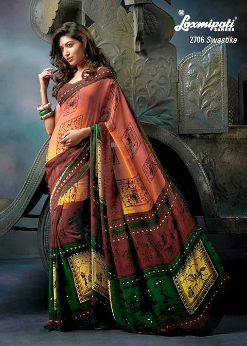Visitors, this prevalent fact that nowaday's, Saree (sari) is most dressed in outfit in marriage and party situations. Not just weddings/parties it is used even satisfied in routine in India & Pakistan. Are you searching for the beautiful party wear clothing or other professional events? Then you are standing up at the right base and what about Saree outfit? You understand it that 100% women vast majority of India is worn out Saree (Sari) for every situation like casually, professional wear, semi formalised wear, weddings, parties and celebrations as well. So many Saree Choices we are talk about with you in last posts but today Styles Look has introduced Excellent Printed Saree Variety 2014/15 for women's. This set is undertaken from the house of Laxmipati—which is well-known Indian saree label and online purchasing store. Wedding and Party wear sarees are created with numerous materials such as Georgette, Chiffon, Silk, Brasso are nourished with attractive embroideries, patch boundaries, shapes, cuts and styles. You will get here large variety of Digital Printed and Colored Sarees. Expect you will just like these Most recent Kalamkari Saree Designs from Laxmipati.